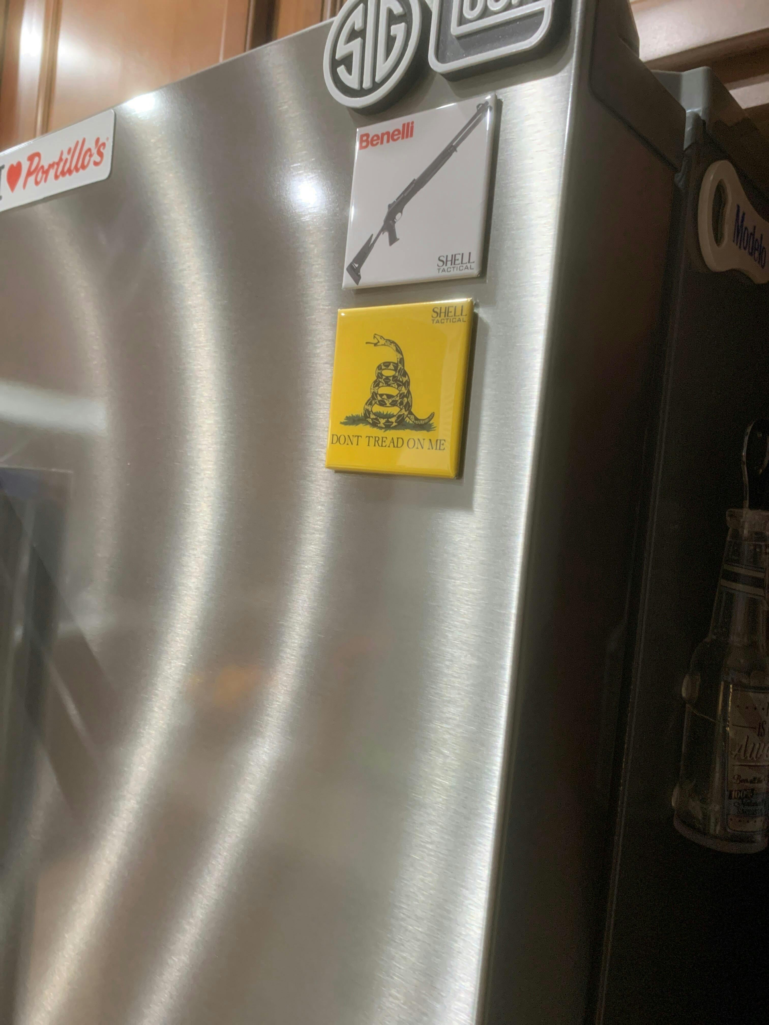 Built to be as practical as it is sharp-looking, these handmade magnets are cut to a clean 2.5" x 2.5" size—ideal for your toolbox, fridge, gun safe, or office board.